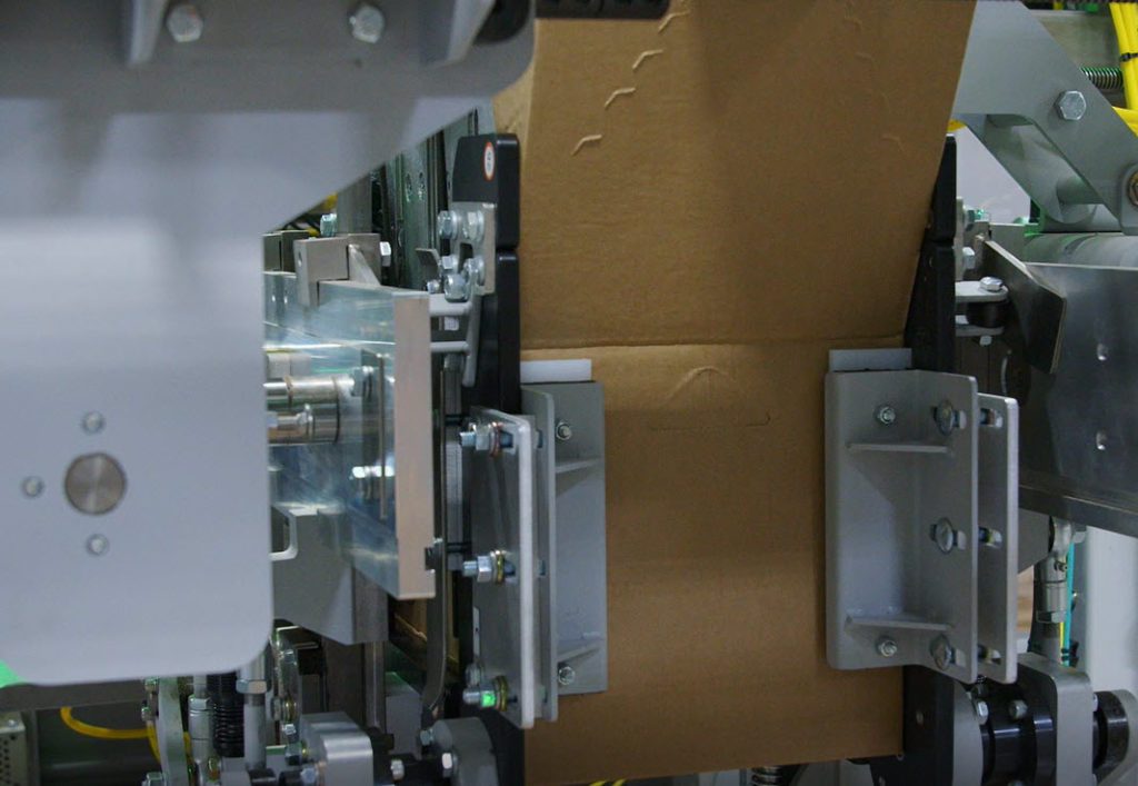 The BF25’s gravity fed magazine ensures that each blank is in proper position for picking. Cases are formed around a static mandrel, which allows higher speeds by removing the need for a reciprocating mandrel. The active forming section ensures consistent glue compression by impacting the glue lines.