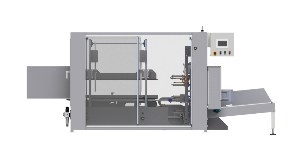 This machine can be modified to operate outside of standard specifications to accommodate smaller or larger dimension products and cases. Specific adjustments require engineering review to determine limitations and potential performance trade-offs such as machine speed or larger machine footprint.
